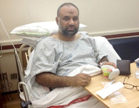 Al-Dimistani announced, "After I was set free, I started my treatment because the injury started to secrete pus and my leg got inflated," adding, "during the past days, my temperature got higher and I had to come to the emergency department in Al Salmaniya Medical Complex where I was given antibiotics through an intravenous IV. I then underwent a surgery and as a result I am still at the hospital."