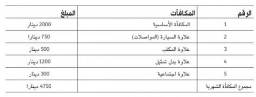 ومكافآت النواب الحالية تُقدّر بـ 4750 دينار بحريني شهرياً مقسمة كالتالي (2000 ديناراً المكافأة الأساسية، 750 ديناراً علاوة السيارة "المواصلات"، 500 ديناراً علاوة المكتب، 1200 ديناراً علاوة بدل تمثيل، 300 ديناراً علاوة اجتماعية).