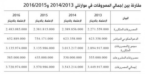 وأصبح بذلك إجمالي الإيرادات نحو 4 مليارات دينار و254 مليون دينار في الموازنة الحالية، في حين كان يبلغ في الموازنة السابقة 5 مليارات دينار و578 مليون دينار، منخفضاً بذلك ما نسبته 23.7 في المئة عن الموازنة السابقة.