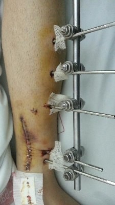 أدخل المستشفى في تاريخ 10/9/2014 وتم إجراء عملية أزيل فيها السيخ من داخل رجله، ووضع الحديد خارج الرجل. بقت رجل أيوب مصفّدة بالحديد لمده ثلاثة أشهر دون أن يلتئم العظم. السبب تأثّر عصب الرجل بسبب تأخر العلاج.