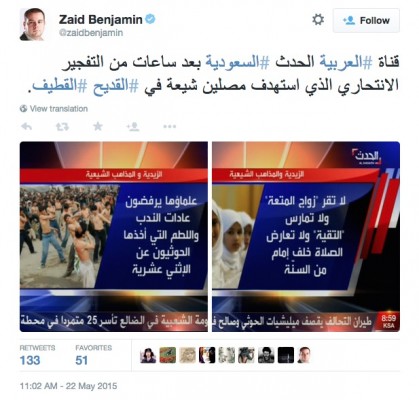 .ولاحظ الصحفي بنجامين في تغريدة أخرى أن رجال الدين السنة في السعودية، دانوا المجزرة، لكنهم امتنعوا عن الترحّم على الشهداء