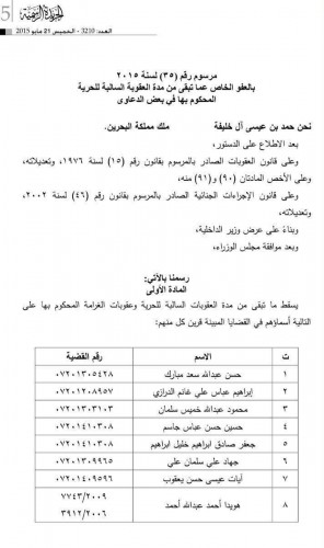 بالأسماء- المشمولون بعفو الملك 48 محكوما بينهم قاتل الشهيد على مشيمع