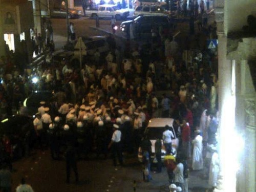 وقد أبلغني أحد شهود العيان الذين أعرف مصداقيتهم عن تعرض أحد المعزين للضرب على يد أحد قوات الشغب، الذين قاموا بدورهم بتسليمه إلى عدد من البلطجية، الذين سماهم الشرطة بالنشامى حين سلموا المواطن الأعزل إليهم. وقد تعرف هذا المواطن إلى أربعة من البلطجية الذين سلموه بدورهم إلى مركز شرطة المحرق!