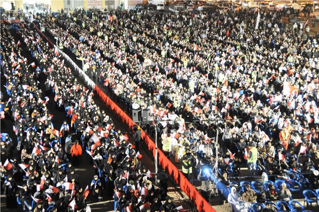 مرآة البحرين: نظمت جمعية "الوفاق" مساء الثلاثاء مهرجاناً جماهيرياً حاشداً تحت عنوان "الشعب سوف ينتصر"، شارك فيه آلاف المواطنين في قرية المقشع.