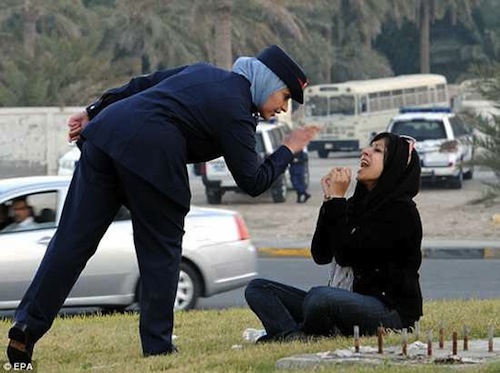 وأثار فيديو قام بتصويره نشطاء لعملية اعتقال زينب الخواجه، وهي ابنة الناشط الحقوقي عضو منظمة الخط الأمامي "فرونت لاين" الإيرلندية عبدالهادي الخواجه الذي يقضي حكما بالمؤبد بسبب نشاطه في ثورة 14 فبراير/ شباط، على أيدي عناصر من الشرطة النسائية، وضربها بعد جرها في الشارع، كثيراً من ردور الأفعال، ولقي تغطية واسعة في وكالات الأنباء والقنوات الإخبارية العالمية.