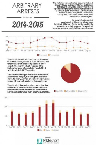 مركز البحرين لحقوق الإنسان: مارس 2015 شهد أعلى الاعتقالات منذ سنتين بواقع 272 حالة