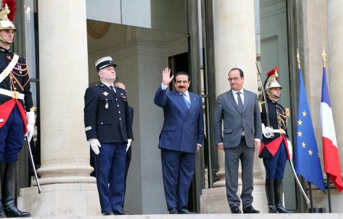 مرآة البحرين: التقى الرئيس الفرنسي فرنسوا هولاند (الثلاثاء 8 سبتمبر/ أيلول 2015) ملك البحزين حمد بن عيسى آل خليفة، وتناول اللقاء القضايا الإقليمية ومكافحة إرهاب تنظيم داعش ومصادر تمويله -بحسب وكالة الأنباء الرسمية-.
