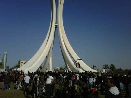 طفلة صغيرة لا تتجاوز الخامسة، تجلس عند خيمة صغيرة فُرشت لحمايتها من البرد، تحمل لافتة مكتوب عليها "نحن أهل سلم". آخر يحمل علماً كبيراً للبحرين، يفوق طوله بكثير، تكاد لا تلحظه لولا أن ترى علماً يبدو كأنه يتحرك وحده. فتيات يلتففن حول مجموعة من الأوراق البيضاء الكبيرة، يكتبن عليها شعارات باسم الوطن. شباب يفترشون الأرض، بعد صباح طويل، يتناولون وجبة خفيفة، أسألهم: وماذا عن نظافة المكان. يقولون: الفضلات نلقيها في هذه الأكياس، لا تقلقي فالنظافة أولاً. ابتسم وأغادر. تلك بعض التفاصيل القريبة. لكن ما إن ترفع بصرك قليلاً، ستجد حولك ألوفاً، وقوفاً، يتحلقون حول شعارات وهتافات تصدح حول دوار اللؤلؤة. الدوار المركزي في العاصمة والذي صار يوصف الآن بميدان تحرير البحرين، أو ميدان اللؤلؤ.