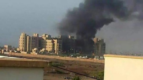 وفي مكان قريب من الفندق أطلق صاروخان في اتجاه ثكنة عسكرية لقوات التحالف العربي بقيادة سعودية ومقر لعناصرها لكنهما أخطا الهدف بحسب سكان في الحي.