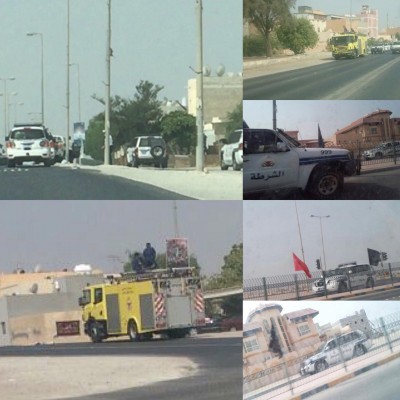 ونشر النشطاء صوراً للدفاع المدني مصحوبةً بعدد كبير من قوات أمنية تابعة للداخلية وهي تجوب شوارع بمنطقة إسكان عالي، لإزالة أية لافتات أو أعلام تخص الذكرى الدينية.