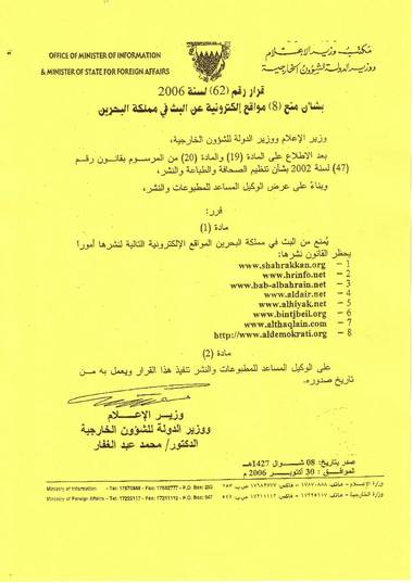 2006: وثيقة أمر لإغلاق المواقع.. سبقتها وتلتها أوامر