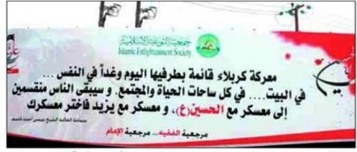 لافتة الشيخ عيسى قاسم: معسكر الحسين ومعسكر يزيد
