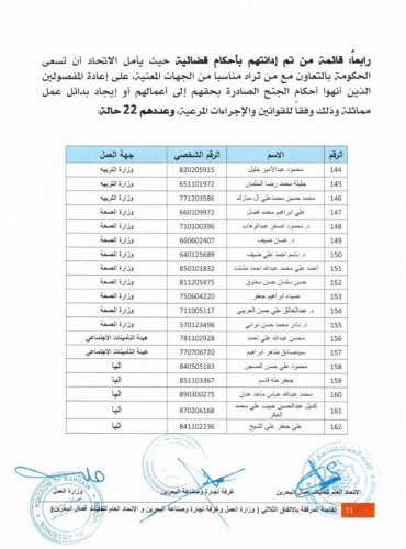 وانتقد الدمستاني تضمين أسماء المفصولين الذين صدرت بحقهم أحكام قضائية، معتبراً إياها "حركة ملتوية وكانت لذر الرماد في العيون، ولسحب الشكوى العمالية الدولية، فلم يعد أي من الذين صدرت بحقهم أحكام قضائية من المفصولين إلى وظائفهم".
