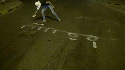 وقام محتجون في سترة، كرزكان، الدراز، عالي، الديه بنسخ الشعار على طول الشوارع.