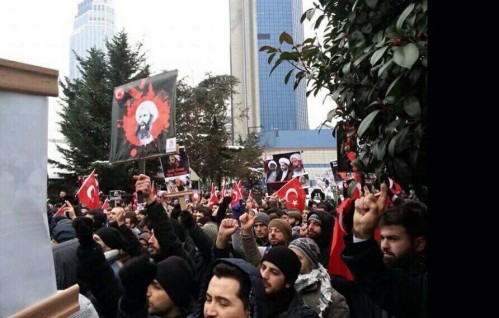 مرآة البحرين (خاص): تظاهر عشرات الأتراك (الأحد 3 يناير/ كانون الثاني 2015) أمام السفارة السعودية في العاصمة أنقرة غضبا لإعدام الشيخ نمر نمر، منددين بسياسات السعودية في التمييز بين المواطنين.
