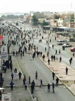 واشتبكت عشرات النساء ارتدين النقاب مع الشرطة وهتفن بسقوط حكم آل سعود لدى وصول مجموعة من الشبان الملثمين رشقت الشرطة بالحجارة والقنابل الحارقة. وردت الشرطة بقنابل الغاز والخرطوش.