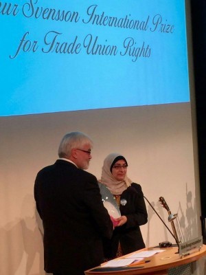 وتسلمت السلمان الجائزة في حفل أقيم بالعاصمة النرويجية أوسلو (18 يونيو/ حزيران 2015). وتطرقت اللجنة التي تتألف من 7 أشخاص بارزين في الحركة النقابية النرويجية في حيثيات قرارها إلى التعذيب والإذلال الذي لقيه كل من "أبو ديب" و"السلمان" على أيدي السلطات منذ اندلاع احتجاجات العام 2011 بعد دعوتهما إلى الإضراب.