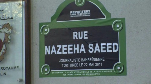 وفي خطوة للاحتجاج على اضطهاد الصحافيين، بمناسبة "اليوم الدولي لإنهاء الإفلات من العقاب على الجرائم المرتكبة ضد الصحافيين"، أعادت منظمة مراسلون بلا حدود تسمية 12 شارعا في باريس بأسماء صحافيين تعرضوا للقتل أو التعذيب، من بينهم الصحافية نزيهة سعيد.