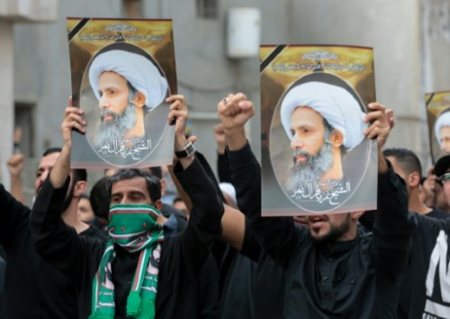 وحمل المتظاهرون ايضا اعلاما سوداء وصور الشيخ النمر الذي كان من اشد معارضي العائلة المالكة السعودية.