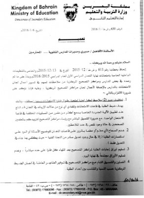 مرآة البحرين: قالت صحيفة الوسط إن وزارة التربية والتعليم وجهت إدارات المدارس لضرورة إلزام جميع المعلمين بضرورة التعاون والتقيد التام بخطة مراكز تصحيح الامتحانات لما يتطلبه العمل خلال فترة الامتحانات من استمرار أعمال لجان التصحيح لبعد انتهاء الدوام الرسمي وفي عطلة نهاية الأسبوع.