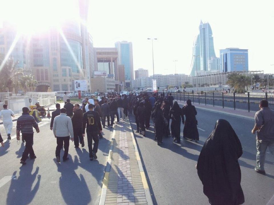 وضربت ازدحامات شديدة اليوم الشوارع المؤدية إلى مناطق السيف والمحرق والبديع والمنامة، خصوصاً مع إغلاق قوات الأمن عدداً من الشوارع الرئيسة من دوار عبدالكريم إلى المحرق. وقالت الجمعيات السياسية في بيان اليوم إن "قوات الامن البحرينية هاجمت مسيرة سلمية كان يتقدمها قادة قوى المعارضة البحرينية بعنف ووحشية واستهدفتهم باستخدام مجموعة من الأسلحة قلب العاصمة المنامة بعد تحركهم من منطقة رأس رمان باتجاه باب البحرين".