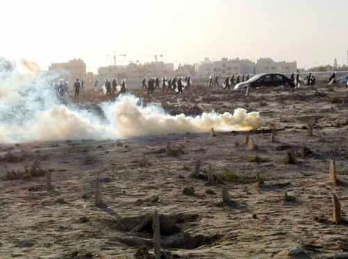 قدرت: في هذه الأثناء خرجت الجنازة مع جزء من المشيعين. فجأة ظهر لنا رجال الشغب من خلف جامع كانو، ومباشرة أطلقوا علينا قنابل الغاز بشكل كثيف وعشوائي. ذهبت قريبا من الشغب وكان الهواء معاكسا عليهم وعلي. سألتهم بصعوبة أين الضابط؟ فصرخوا في وجهي "امش، ابتعد"