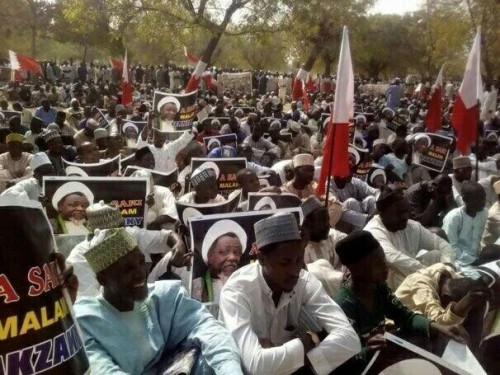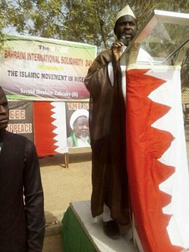 المتظاهرون رفعوا أعلام البحرين ورددوا شعارات تدين الصمت الدولي عن انتهاكات حقوق الإنسان في البحرين، كما رفعوا صورا لرجل الدين النيجيري الشيخ إبراهيم الزكزاكي الذي أصيب في هجوم للجيش استشهد على إثره العشرات.