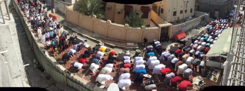 ودعا رجال الدين البحرينيون إلى صلاة مركزية في الدراز اليوم، وقدر شهود عيان الحضور بالآلاف، الذين لم يتسع لهم المسجد، وانضموا إلى الصلاة في محيط الجامع، بعد افتراش الطرقات الداخلية.
