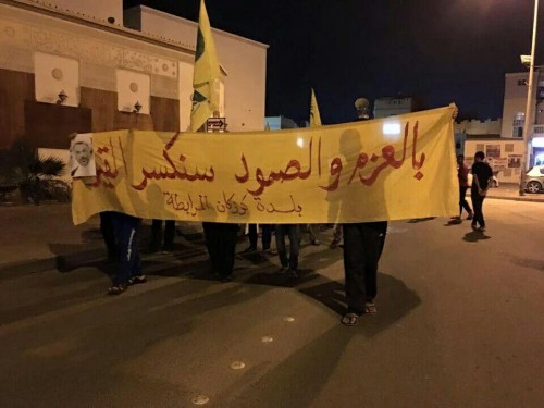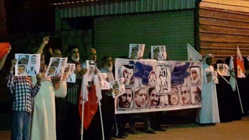 وجدد المتظاهرون في مناطق مختلفة "الوفاء لرموز المعارضة"، مؤكدين على مواقفهم الثابتة في المطالبة بإنهاء استحواذ عائلة آل خليفة على السلطة.