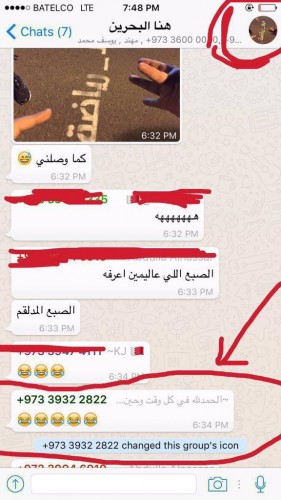 وتظهر الصورة المنتشرة إن وزير الإعلام الحمادي قام بنفسه بتغيير صورة البروفايل لمجموعة الواتساب "هنا البحرين" واستبدلها بالصورة المسيئة.