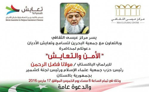 مرآة البحرين (خاص): يحاضر في البحرين غدا  (الخميس 17 مارس/ آذار 2016) رجل دين باكستاني متطرف عن التعايش. ولا غريب في ذلك، فالدولة التي هدمت 40 مسجدا للطائفة الشيعية لا بد أن يكون منظروها المتسامحون والمتعايشون من حركة طالبان أو تنظيم القاعدة أو ربما داعش!