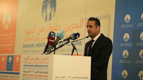 وخلال الجلسة الافتتاحية تحدث الحقوقي البحريني البارز سيد يوسف المحافظة، الذي يمثل مركز البحرين لحقوق الإنسان في المؤتمر، وقال إن الاضطهاد السياسي والطائفي وانتهاك الحريات أصبحت عناوين للبحرين، لمن يود التعرف على هذه المملكة الصغيرة.