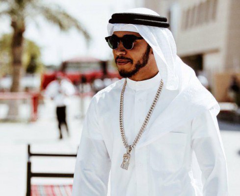 وكان هاميلتون قد وصل إلى حلبة الصّخير الدّولية للمشاركة في سباق الفورمولا 1 وهو يرتدي ثوبًا أبيض، وهو اللّباس التّقليدي للنّخبة العربية.