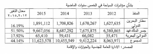 كما شهد عدد السياح العابرين عبر مطار البحرين والموانئ البحرية زيادة.