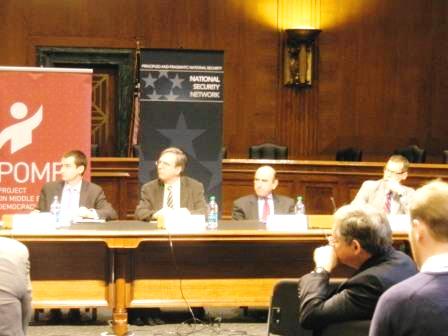 وكان من بين المحاضرين السيناتور في الكونغرس رون ويدن، والخبير في مجموعة الأزمات الدولية جوست هيلترمان، ومساعد وزير الخارجية الأمريكي الأسبق إلويت أبرامز، ونائب مساعد وزير الدفاع الأمريكي السابق كولين كال.