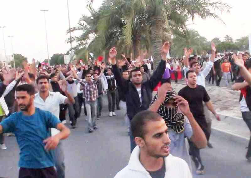 بدأ الزحف منذ الثاني عشر من فبراير، توجه للميدان مذ ذاك الوقت أكثر من مائتين وخمسين من شباب الثورة، بينهم فتيات، أطلق عليهم الناس أمراء وأميرات الدوار، حملوا الأعلام، وتوجهوا عراةً إلا من حلم العودة، دخلوا فرادى، وأحياناً بجماعات تقل عن خمسة، لكن بالأمس تغيرت المعادلة، دخلت جماعات تصل إلى ثلاثين ثائر، من بني جمرة وسار، جميعهم جاؤوا طواعية، ليسلموا أنفسهم للقيد، صغاراً وكبار، بعضهم لا يتجاوز الثانية عشرة، وبعضهم تخطى الثلاثين، يجمعهم حلم وحيد، العودة للميدان من جديد.