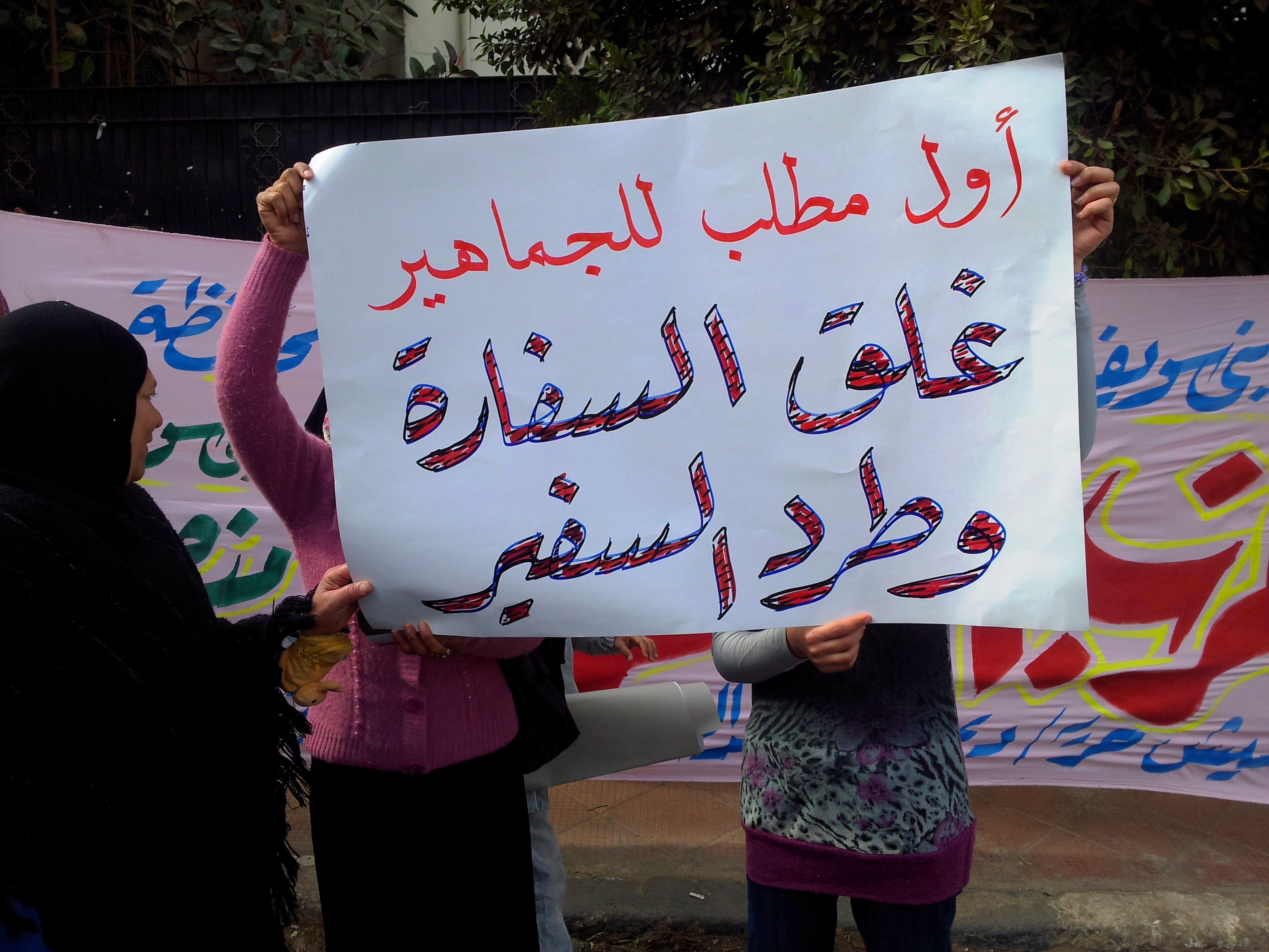 وانتقد الأمين العام لـ"حزب التحرير" محمود جاد "موقف الجامعة العربية والبرلمان المصري من المجازر التي تحدث في حق الشعب البحريني". وقال: "الوقفة جاءت للمطالبة بطرد السفير (البحريني) وكذلك سفراء قطر وإسرائيل والسعودية لمشاركتهم في المجازر التى تحدث في حق الشعوب العربية".