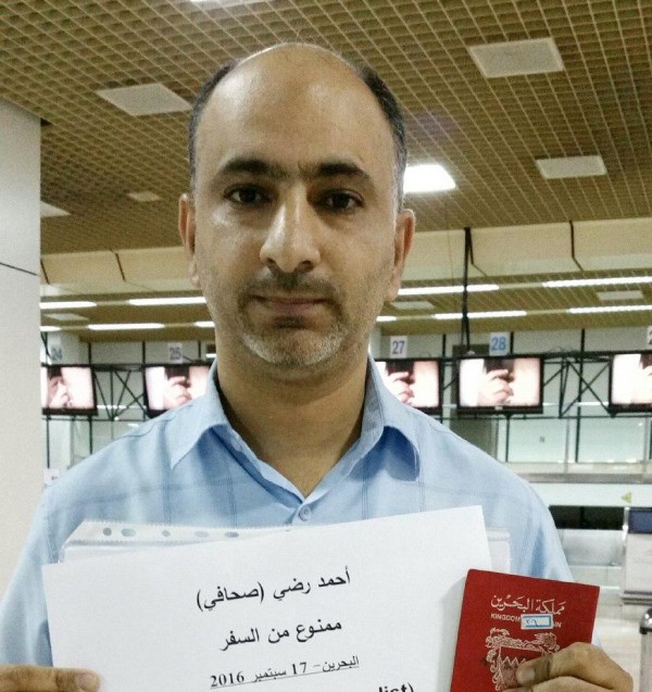 مرآة البحرين: قال الصحافي أحمد رضي أن سلطات مطار البحرين الدولي منعته (السبت 17 سبتمبر/أيلول 2016) للمرة الثانية من مغادرة البلاد دون إبداء أي سبب قانوني لذلك المنع.