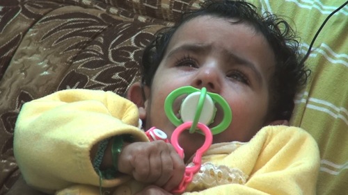ظهرت الطفلة زينب وهي تتلقى التنفس الاصطناعي بعد اختناقها بالغازات التي غرقت بها قرية المعامير وقت تنفيذ قوات درع الجزيرة والجيش والحرس الوطني مجزرة سترة، اختنقت زينب.لكن كيف حالها بعد عام؟