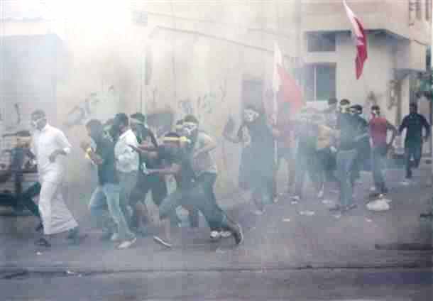 ووفقاً لشهود عيان، فإن قوات الأمن البحرينية تستخدم الغازات المسيلة للدموع والقنابل الصوتية بكثافة لتفريق التظاهرات التي تنظّم في القرى الشيعية للمطالبة بإصلاحات في هذه البلاد التي تحكمها عائلة آل خليفة.