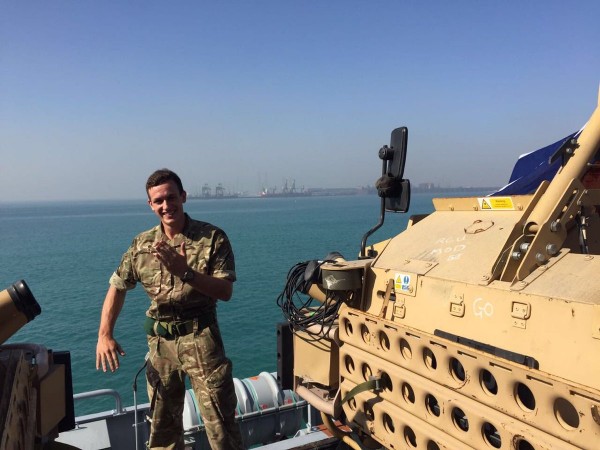 ونشر سامويل عبر حسابه على شبكة التواصل الاجتماعي تويتر (الثلاثاء 6 ديسمبر/كانون الأول 2016) مقطعاً مصوراً له وهو على متن البارجة إتش إم إس أوشن، أكبر بارجة في الأسطول الملكي البريطاني، موضحاً أنها تبين التزام المملكة المتحدة بأمن الخليج، وإن عملها حالياً يتركز في كشف الألغام في مضيق هرمز.