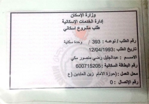وأفادت العائلة في تصريح لصحيفة الوسط أنه «منذ فبراير/ شباط 2015، تم الاتصال بنا لإخبارنا بأن طلب العائلة الإسكاني تم تخصيص وحدة سكنية له في مشروع البلاد القديم الإسكاني، وطلب منا الحضور إلى مبنى الوزارة لاستكمال إجراءات التخصيص، وعندما راجعناهم، طلبوا منا إحضار عدة مستندات اعتيادية لاستكمال الإجراءات، كان من ضمنها نسخة من جواز صاحب الطلب وهو الوالد، غير أننا لم نكن نملك لا الجواز ولا نسخاً منه، بعد أن تم القبض على الوالد في العام 2011، وحكم عليه بالسجن المؤبد، حيث تمت مصادرة الجواز أثناء إجراءات القبض عليه وقتها، وقد خاطب الوالد بعد معرفته بالموضوع الجهات الأمنية المختصة برسائل مكتوبة لطلب إحضار الجواز أو نسخ منه، إلا أنه استلم رداً منهم يفيد بأنهم لا يعرفون مصير الجواز، ما استدعى أن يخاطبهم مجدداً لإصدار بدل فاقد عنه، حتى تتمكن العائلة من استكمال إجراءات التخصيص التي تطلبها وزارة الاسكان».