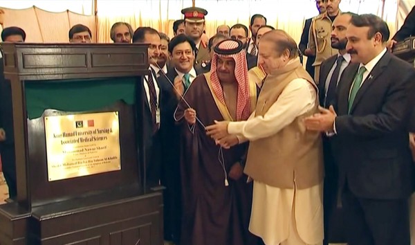 وقالت وكالة أنباء البحرين إن رئيس الحرس الوطني محمد بن عيسى اَل خليفة شارك بناءً على تكليف من الملك حمد بن عيسى آل خليفة مع رئيس الوزراء الباكستاني محمد نواز شريف في الحفل الذي أقيم في إسلام اَباد بمناسبة وضع حجر الأساس لجامعة الملك حمد للتمريض والعلوم الطبية المصاحبة باسم"جامعة الملك حمد" وبمشاركة ممثلين من مستشفى الملك حمد في البحرين.