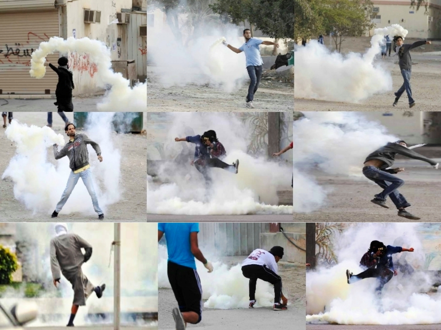 ويوم أمس اختارت صحيفة لوس أنجلس تايمز صورة لمتظاهر بحريني يركل قنبلة غاز مسيلة للدموع تجاه قوى الأمن بعد أن أطلقت عليه، اختارتها على أنها "صورة اليوم المذهلة"! بينما ذهب جون تيموني بحيرته إلى وسائل الإعلام ليصرح بأن عدد قنابل الغاز يطلق بالتناسب مع عدد قنابل المولوتوف!