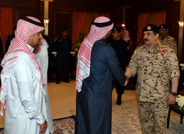 حمد بن عيسى آل خليفة قال خلال زيارته لوزارة الداخلية أعرب عن اعتزازه بعمل الوزارة، مشيدا "بما   حققوه من إنجازات في التعامل الأمني مع مختلف القضايا التي تمس أمن البلاد وتمكنهم من إفشال المخططات الإرهابية وملاحقة المطلوبين للعدالة، وأداء المهام الأمنية المطلوبة بجاهزية عالية واحتراف".