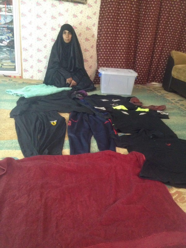 Photos circulated on social media showed mother of martyr Sami Mushaima near some of his belongings; clothes, keys, ring, cap, ID and phone charging card.