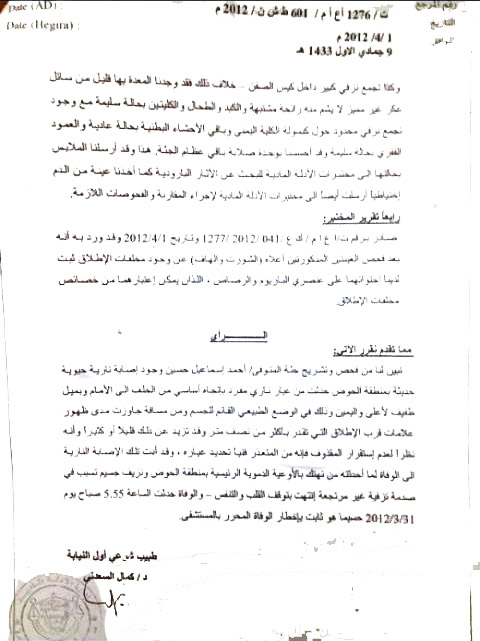 وقد أبلغت العائلة تحفظها إلى الطبيب الشرعي وتمسكت بضرورة أن تتم كتابة سبب الوفاة إلى طلق رصاص.