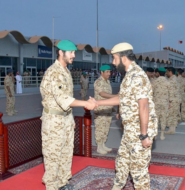 خالد بن حمد يستقبل جنوداً عائدين من المشاركة في الحرب على اليمن