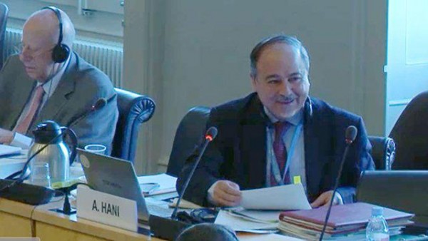 عضو لجنة مناهضة التعذيب عبدالوهاب هاني خلال مناقشة تقرير البحرين بجنيف أمس