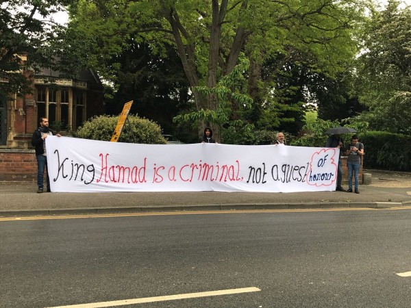 مرآة البحرين: بث نشطاء في وسائل التواصل الاجتماعي صوراً عن اعتصام لنشطاء في بريطانيا، احتجاجاً على زيارة ملك البحرين للمملكة المتحدة.